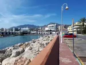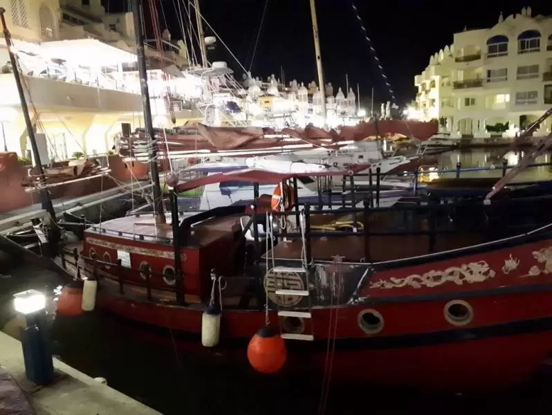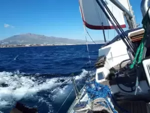 Manewrowanie niewielkim jachtem wymaga koncentracji i przewidywania drogi takiego kolosa. Wreszcie na morzu za skałą gibraltarską, która jak zwykle otulona kołdrą chmury. Mijamy Esteponę, Malagę i zawijamy do Benalmadeny. Nabrzeże dla gości zajęte więc stajemy obok innych większych jednostek. Rano zgłoszenie. Płacimy 45 euro i mamy dobę na zakupy oraz odpoczynek. Porządnie myjemy z soli jacht. To jeszcze naloty z Atlantyku. Grudki świecą na relingach, kabestanach. Zeżrą nam łódź na amen.