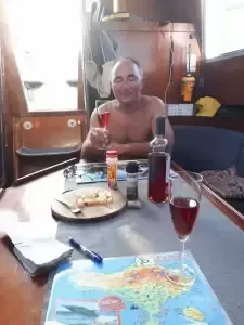 Ruszamy w południe. Musieliśmy odwołać spotkanie z Oleńką i Crisem, bo wiatr się zmieniał i trzeba by było płacić za kolejna dobę. Widzimy się częściej w kraju. Wiatr kaprysi. Najpierw dwie doby zdrowe 6-7 B w twarz przy wysokiej fali. Dla Venatora to normalne warunki, ale mokro jest. Toż to morze śródziemne – miało być miło i ciepło. Potem następne dwie z wiatrem bylejakim i martwą falą.