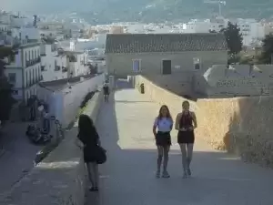 Ibiza jest przereklamowana. Fajne te knajpki, dyskoteki ale to komercja. Drogo i szpanersko. A my w sandałkach wracamy po ciemku na jacht. Kilka godzin snu i odebranie prognozy. Niże wokół morza śródziemnego narobiły bałaganu w pogodzie. Od wschodu zbliża się poważny sztorm z centrum nad Majorką, więc trzeba się gdzieś schować i ruszyć dalej, gdy wiatr odkręci na zachód. Ruszamy o świcie i celujemy na Sant Antonio - coś tam. Na mapie z plotera wygląda na wioskę rybacką, ale chyba jest nieaktualna. Widać, że sezon na ryby i małże dopisał, bo nabudowali w cholerę hoteli wysokich do nieba.