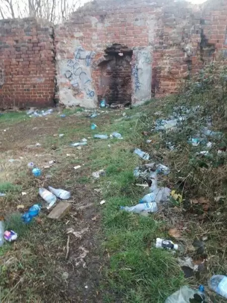- Na porannym spacerze z psem, postanowiłem przejść się za nowe Dino w Środzie Śląskiej, na tak zwaną polankę. Koło muru z cegieł odkryłem wysypisko śmieci.