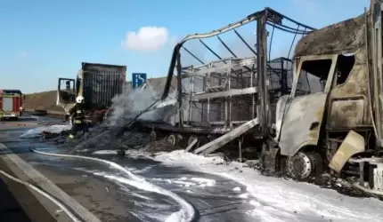 Spłonęły 2 ciężarówki. Groźny wypadek na A4 z udziałem 4 pojazdów ciężarowych!