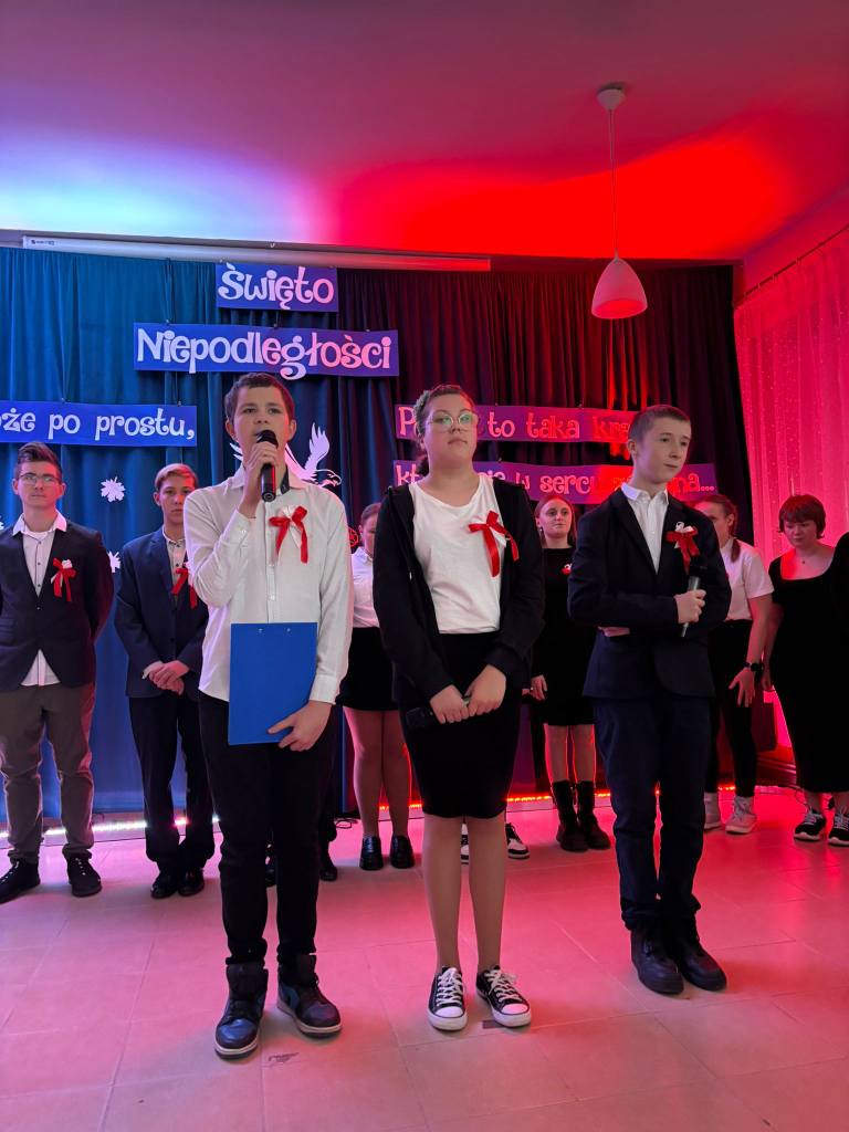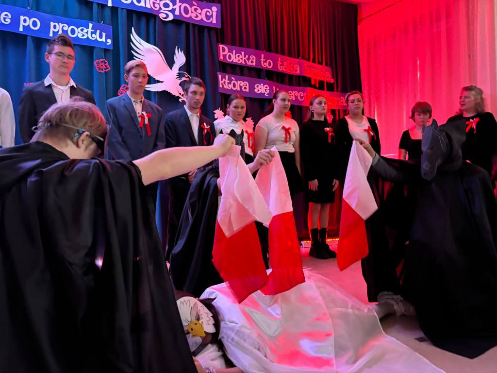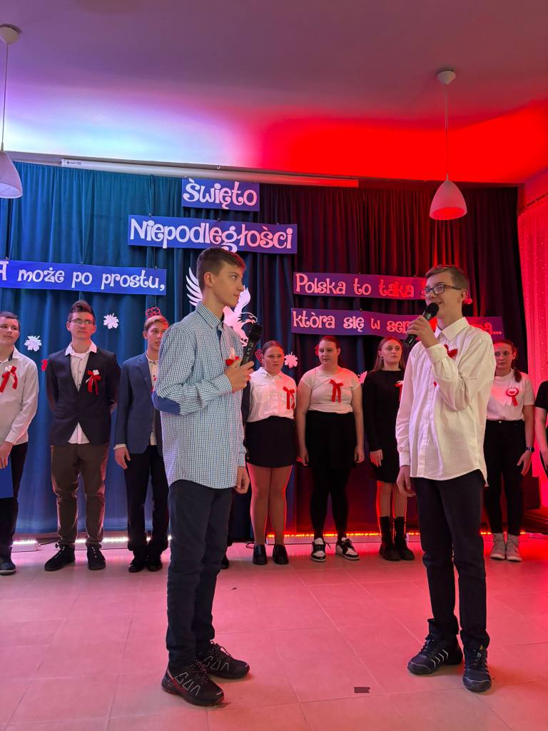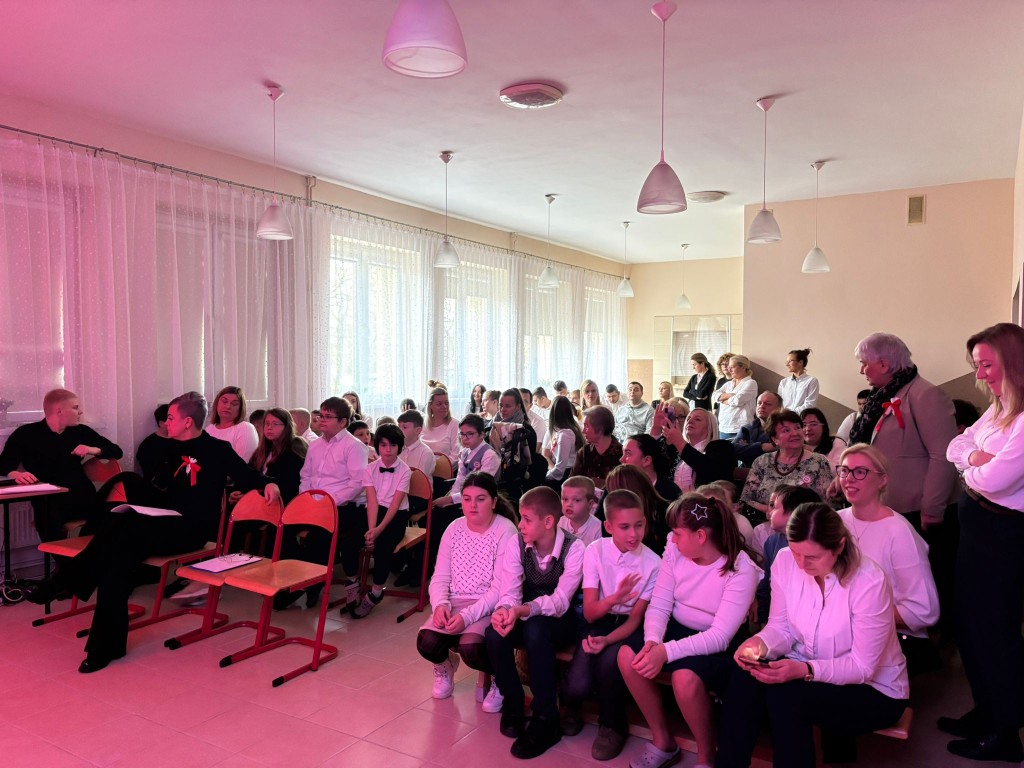 Uczniowie, nauczyciele, rodzice i zaproszeni goście z podziwem słuchali występujących, którzy poprzez słowa wierszy i pieśni znanych poetów oddawali hołd bohaterom i wyrażali wdzięczność naszej Ojczyźnie – Polsce, którą wszyscy nosimy w sercach. Bo przecież Polska to taka kraina, która się w sercu zaczyna.