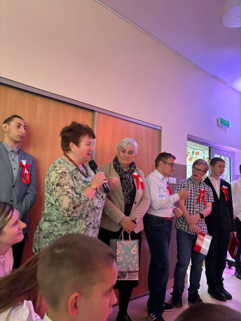 Po akademii głos z podziękowaniami zabrały: dyrektor SOSzW p. Lidia Walerych, prezes oddziału ZNP Środa Śląska p. Janina Kudryńska-Mazur, prezes Stowarzyszenia Klubu Seniora w Środzie Śląskiej p. Róża Błach oraz prezes Zarządu Oddziału Średzkiego Związku Inwalidów Wojennych RP p. Maria Zachary.