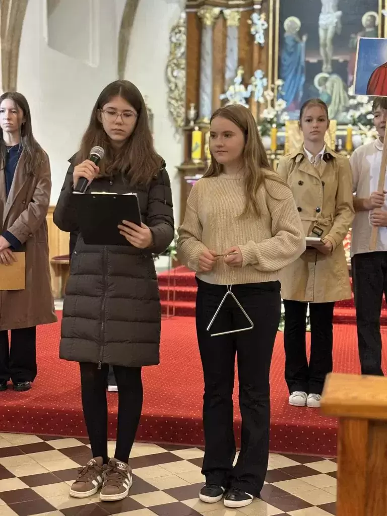 Występ przygotowali uczniowie Szkoły Podstawowej w Kostomłotach, wspierani muzycznie przez scholę parafialną prowadzoną przez Martynę Sawicką, a także wokalnie przez Milenę Kliks i Amelię Pietrzak.