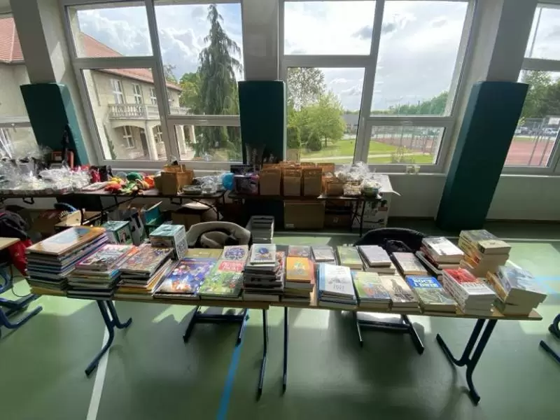 Na miejscu można było odwiedzić stoisko z książkami – kiermasz książek zorganizowany został przez Gminną Bibliotekę Publiczną. To była świetna okazja, by za symboliczną kwotę zdobyć ciekawe tytuły i jednocześnie wesprzeć zbiórkę dla Emilki.