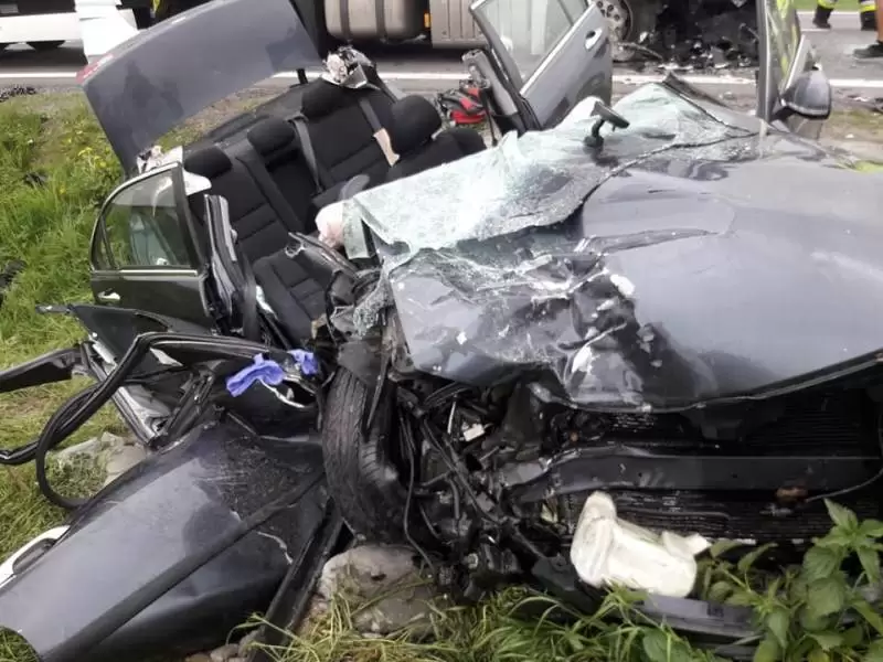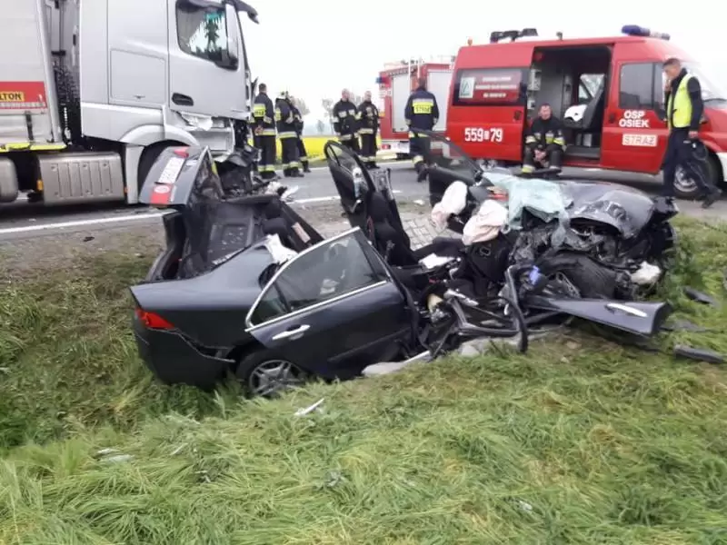 3 maja tuż przed godziną 17 na 377,9 km drogi krajowej K5 na wysokości miejscowości Osiek doszo do zderzenia samochodu osobowego z samochodem ciężarowym.