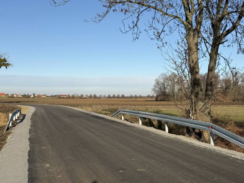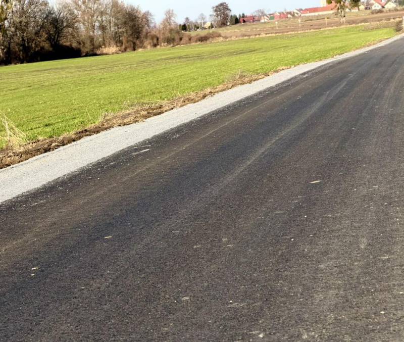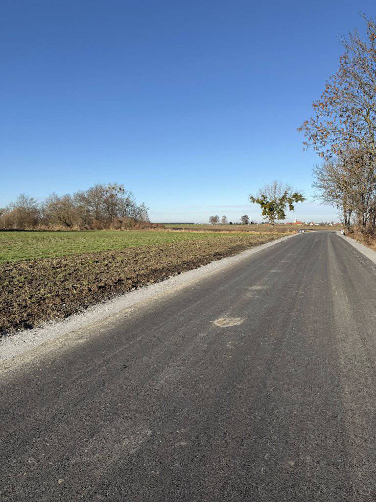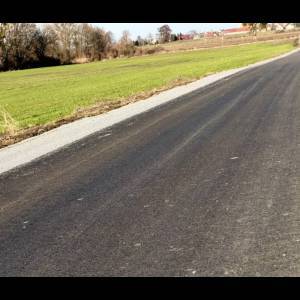 - rozbudowa jezdni do normatywnych szerokości 5,0-5,5m o długości 2km 261m, nawierzchnia z betonu asfaltowego wraz z poboczami o szerokości 0,75 m,