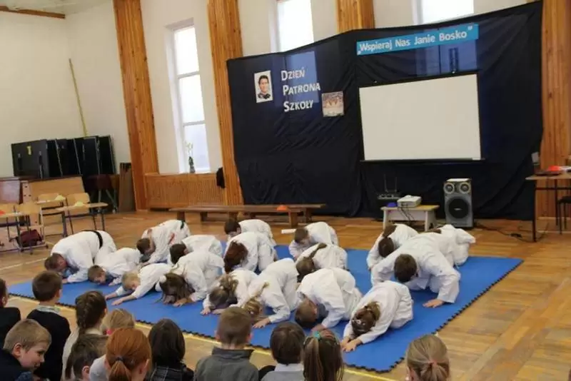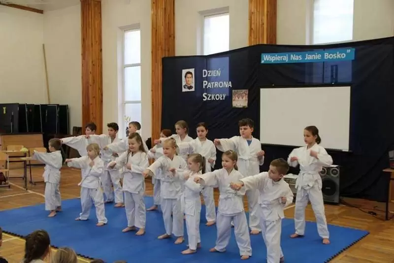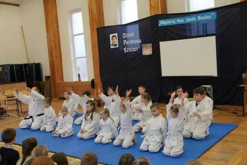 Wspaniały pokaz karate dodał całemu programowi niezwykłego klimatu, bowiem dyscyplina sportu jaką jest karate pokazuje jak prowadzić życie zgodnie z zasadami, w rytmie własnej wrażliwości, pokory, szacunku czyli takie które stanowi o wartościach wyznawanych przez wspomnianego patrona szkoły św. Jana Bosko. Cała kombinacja poszczególnych prezentacji uroczystego apelu wspaniale nawiązywała do jego tematyki i okoliczności.