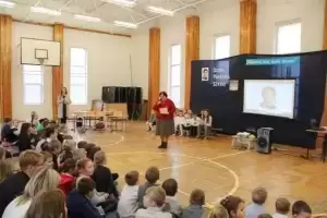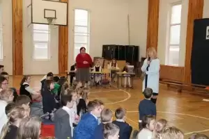 Pani Alicja Meusz - zastępca wójta gminy Kostomłoty, na zaproszenia pani Danuty Basińskiej - dyrektora szkoły podstawowej w Karczycach, 24 stycznia uczestniczyła w Dniu Patrona Szkoły – św. Jana Bosko.