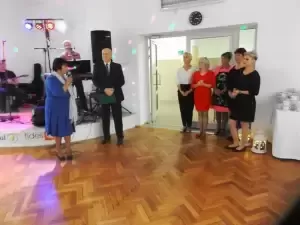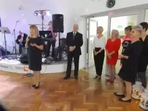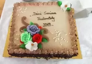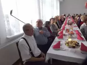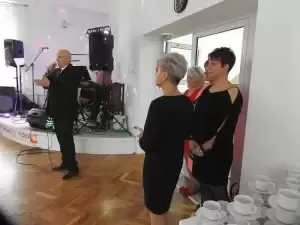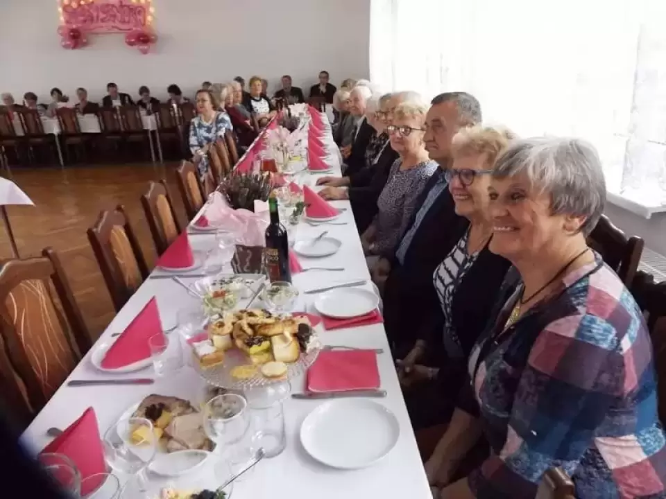 Zabawę Seniorzy rozpoczęli od toastu przy lampce szampana i odśpiewaniu Sto lat. Następnie zostali poczęstowani tortami, przygotowanymi przez właściciela piekarni Rogalik.