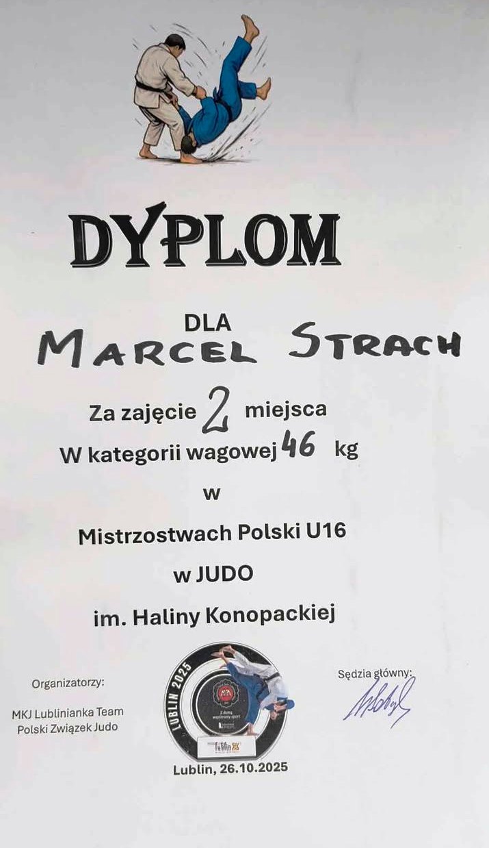 Mieszkaniec naszej gminy, Piotrowic, Marcel Strach zajął II miejsce podczas tych prestiżowych zawodów. Marcel startował w kategorii wiekowej U16 i kategorii wagowej 46 kg.