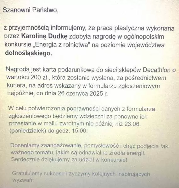 To piękny dowód na to, że młodzi ludzie potrafią mówić o ważnych sprawach — ekologii, solidarności i życiu — z dojrzałością i sercem. Gratulujemy dziewczynkom i życzymy kolejnych sukcesów!