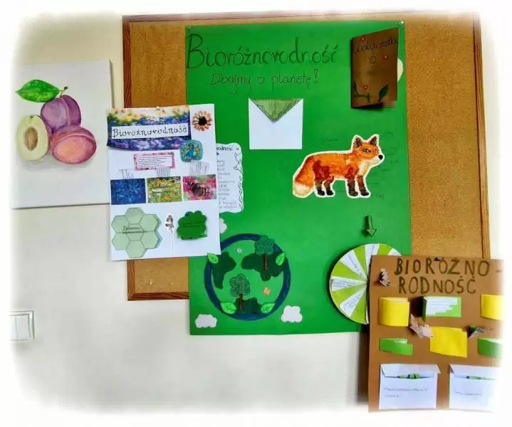 W ramach programu uczniowie koła Odkrywcy świata realizowali projekt Bioróżnorodność wokół nas II . W ramach projektu powstały piękne plakaty, ulotki, lapbooki i makiety. Makiety to pomysł na zagospodarowanie smutnego zakątka koło szkoły. Prace artystyczne dały możliwość twórczej ekspresji. Powstałe prace posłużą jako pomoce dydaktyczne dla młodszych kolegów. Wiele z nich powstało z materiałów odpadowych.