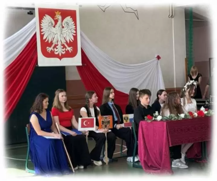 Patriotyczne spotkanie rozpoczęło się wprowadzeniem sztandaru szkoły i wspólnym odśpiewaniem hymnu państwowego. Następnie uczniowie przedstawili wzruszający montaż słowno-muzyczny zatytułowany „Sąd nad Konstytucją”. Dopełnieniem występu był liryczny śpiew oraz scenki, w których uczniowie w humorystyczny sposób przedstawili realia XVIII- wiecznej Rzeczypospolitej.