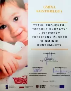 - Kostomłoty (wartość projektu 3,51 mln zł, beneficjent: Gmina Kostomłoty). W ramach projektu „Wesołe Skrzaty” – pierwszy publiczny żłobek w Gminie Kostomłoty sfinansowana zostanie działalność 60 miejsc opieki nad dziećmi do 3 lat.