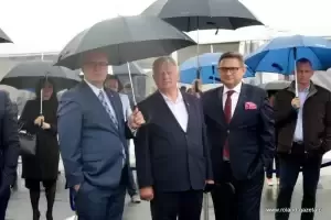 W konferencji prasowej udział wzięli także przedstawiciele powiatu średzkiego - wicestarosta Sebastian Burdzy oraz wójt gminy Kostomłoty Janina Gawlik.