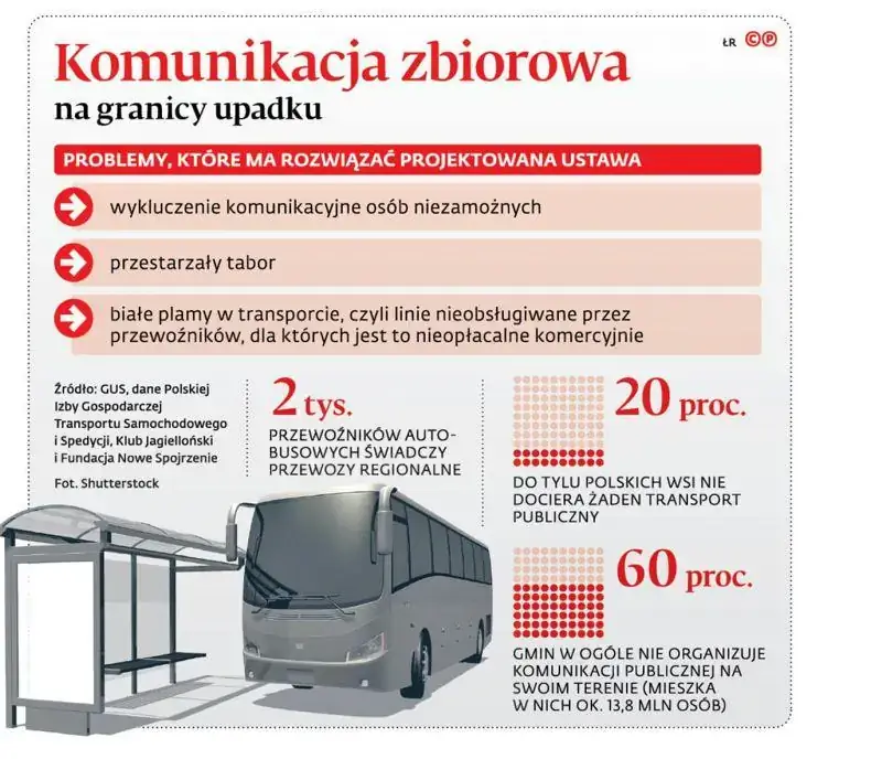 - Nowelizacja ustawy o publicznym transporcie zbiorowym, która miała być panaceum na wykluczenie komunikacyjne mieszkańców małych miejscowości i białe plamy na mapie lokalnych połączeń autobusowych, najprawdopodobniej skończy w koszu – pisze Dziennik Gazeta Prawna.