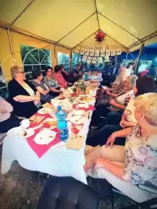 W trakcie drugiego spotkania członkowie Stowarzyszenia przygotowali dla wszystkich pysznego strogonowa, duszonego w żeliwnych kociołkach na paleniskach. Dla gości zaplanowano również niespodziankę. Z Gminnego Ośrodka Kultury przyjechała do Mieczkowa pani Joanna Gąsiorowska, która przeprowadziła warsztaty malarskie. Ich motywem przewodnim była twarz kobiety. - Seniorzy przystąpili do zajęć z wielkim zaangażowaniem, na co patrzyło się bardzo miło. Na zakończenie warsztatów z prac seniorów zorganizowaliśmy wystawę. Można było przejść się po sadzie i obejrzeć wszystkie piękne obrazy - opowiada pani Teresa. W trakcie wydarzenia swoje prace plastyczne zaprezentowała także mieszkanka Mieczkowa Klaudia Woźniak.
