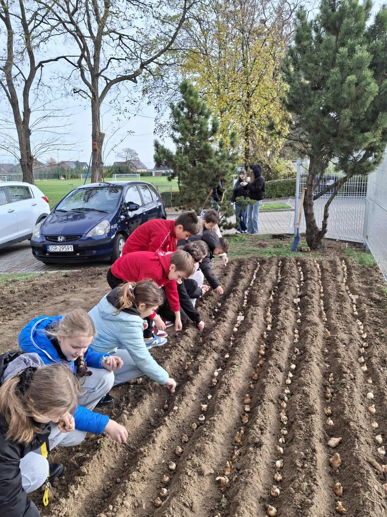 Akcja sadzenia żonkili jest nie tylko częścią ogólnopolskiej inicjatywy „Pola Nadziei”, ale jednocześnie wpisuje się w X edycję Dolnośląskiej Sieci Szkół Promujących Ekorozwój „Ziemia dla wszystkich”. Nasza szkoła już po raz dziesiąty podejmuje działania ekologiczne – tym razem pod hasłem „Tajemniczy Ogród”. Dzięki wspólnemu zaangażowaniu powstaje przestrzeń pełna kwiatów, dobra i nadziei, która wiosną rozkwitnie nie tylko żonkilami, ale także innymi roślinami, czyniąc nasz ogród jeszcze bardziej różnorodnym i pięknym.