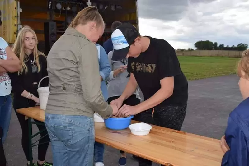 Drużyny zmagały się w pięciu konkurencjach: wyścigi gąsienic, zbieranie ziemniaków w alkogoglach, szukanie złota w misce pszenicy, szukanie krówek w stogu siana, oraz reanimacja sołtysa.