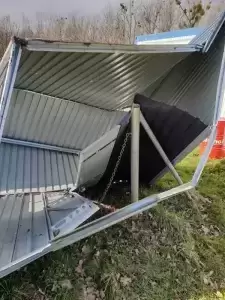W ostatnim czasie silny wiatr, który przeszedł nad wsią nie oszczędził boiska. Mieszkańcy martwią się teraz, skąd wziąć środki na naprawę zniszczonych obiektów - blaszanej szatni i wiaty.