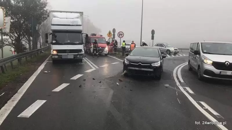 Kierujący samochodem osobowym marki Skoda, jadąc od strony Strzegomia nie ustąpił pierwszeństwa kierowcy zjeżdżającemu z autostrady. Najpierw jego pojazd uderzył w samochód osobowy, a następnie "odbijając się", w nadjeżdżający od strony Kostomłotów samochód ciężarowy.