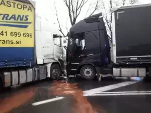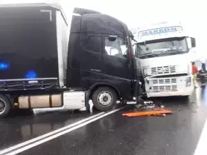 Dziś, około godziny 11:00, na zjeździe z autostrady A4 w Kostomłotach doszło kolizji z udziałem dwóch samochodów ciężarowych.
