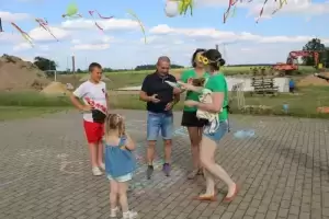 Dzieci aktywnie spędzały czas na dmuchańcu udostępnionym przez GOKiS Malczyce. Dziękujemy Gminie Malczyce za wypożyczenie namiotu z leżakami, który uświetnił atmosferę pikniku. Bardzo dziękujemy koledze Jackowi Dyndzie, który zadbał o oprawę muzyczną. Warto nadmienić, że dzieci wraz z rodzicami brały udział w konkursach przygotowanych przez Sołtysa wsi Justynę Darasz. Nagrodą główną, dzięki hojności Koła Gospodyń, jest wycieczka dla uczestników pikniku, która odbędzie się w najbliższym czasie. Podziękowania kierujemy również do OSP Chomiąża za zagwarantowanie chwili ochłody w postaci kurtyny wodnej, która była dodatkową atrakcją dla najmłodszych. Dziękujemy Beacie Dyndzie za serwowanie przepysznej mrożonej kawy oraz pani Wandzie Bednarz za piękne dekoracje. Dziękujemy naszym niezawodnym paniom z KGW za pyszne wypieki oraz Danucie Pasiut, Paulinie Niżyńskiej, Krzysztofowi Bednarzowi, Kamilowi Daraszowi, Ryszardowi Stanowskiemu za zaangażowanie i pomoc w organizacji pikniku oraz wszystkim osobom, które w szczególny sposób przyczyniły się do jego zorganizowania. Dziękujemy także Firmie JGB Home Invest za poczęstunek - niespodziankę i zasponsorowanie słodkości dla dzieci. Dziękujemy panu Damianowi Stadnikowi za film i zdjęcia z pikniku.