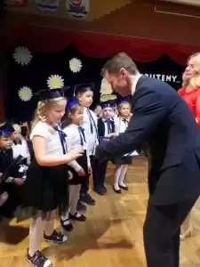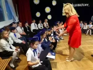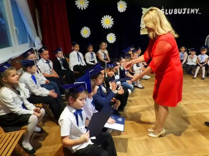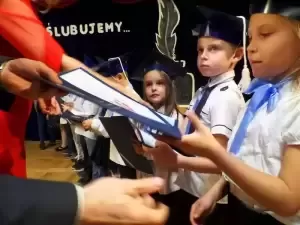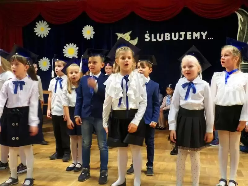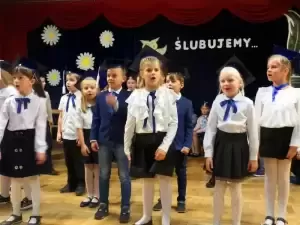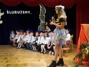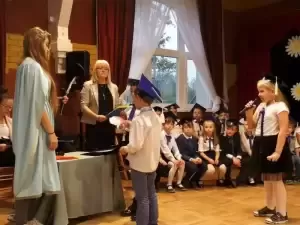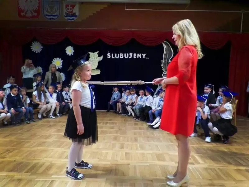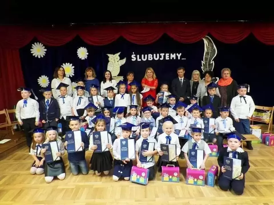 Do grona uczniów dołączyło 37 dzieci. Wszystkie zdały swój pierwszy egzamin oraz z godnością i szacunkiem złożyły ślubowanie, a pani dyrektor Marzena Łaziuk mianowała je gęsim piórem.