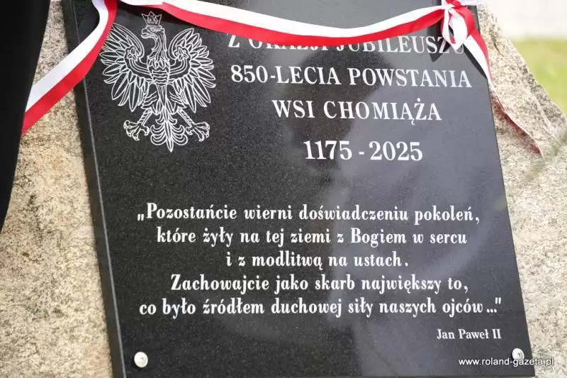 O godzinie 13:00 w kościele pw. św. Michała Archanioła odprawiona została uroczysta Msza Święta, która nadała wydarzeniu głęboki, duchowy wymiar. Po nabożeństwie uczestnicy udali się na pobliski teren, gdzie nastąpiło poświęcenie tablicy upamiętniającej 850-lecie Chomiąży — symboliczny gest, który podkreślił historyczne znaczenie tej miejscowości.