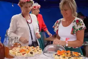 Tuż po ceremonii, spod kościoła wyruszył rozśpiewany korowód dożynkowy, który przemaszerował na plac za plebanią. Tam odbyło się oficjalne otwarcie Dożynek, połączone z występami zespołów ludowych, konkursami oraz prezentacją wieńców dożynkowych — misternie wykonanych i pełnych symboliki.