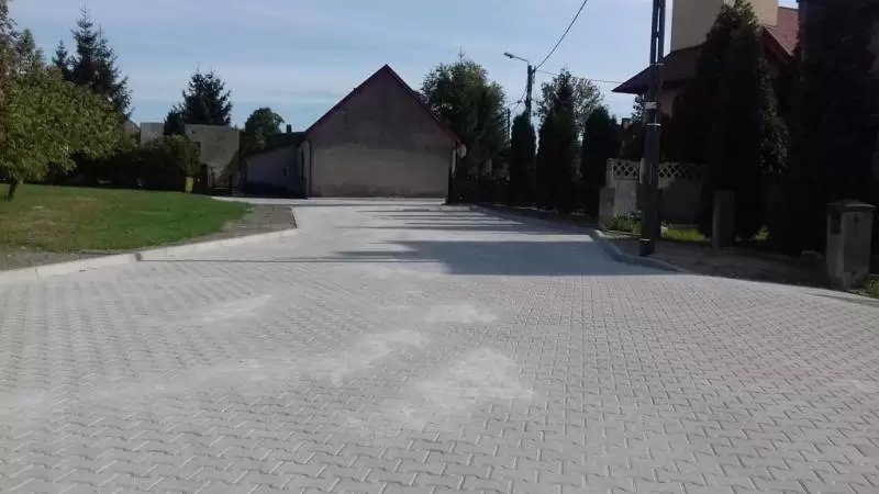 Prace remontowe objęły rozbiórkę istniejącej nawierzchni gruntowej, korytowanie pod jezdnię, zjazdy i skrzyżowania, wykonanie obramowania jezdni z krawężników betonowych, wykonanie podbudowy pod jezdnią oraz wykonanie nawierzchni jezdni i zjazdów z kostki betonowej.