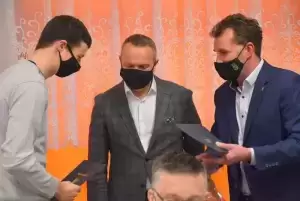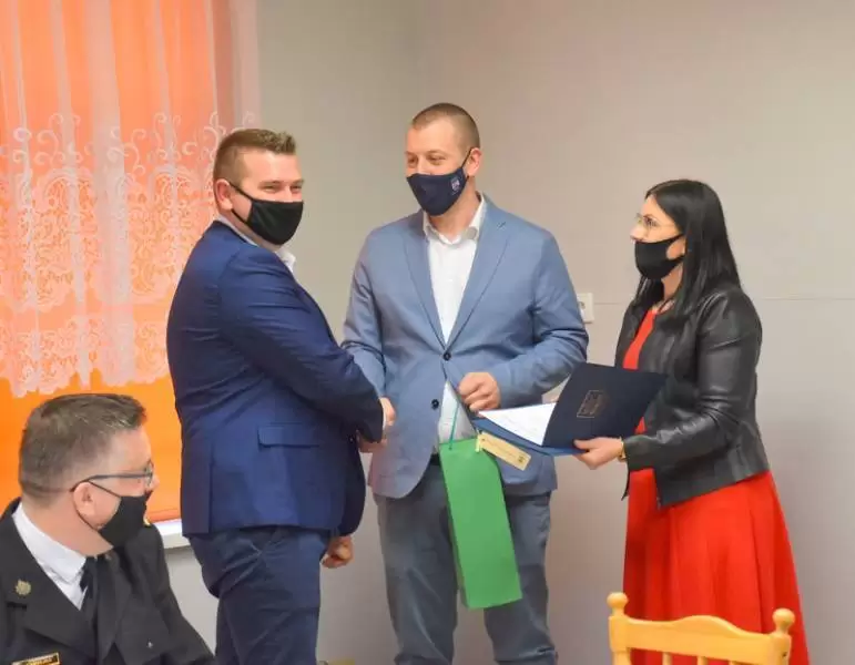 Przedstawiciele jednostek OSP z terenu gminy Malczyce: Wilczków, Rusko, Malczyce i Chomiąża oraz Komendant PSP w Środzie Śląskiej odebrali podziękowania i gratulacje od przedstawicieli władz samorządowych gminy Malczyce oraz władz powiatu średzkiego.