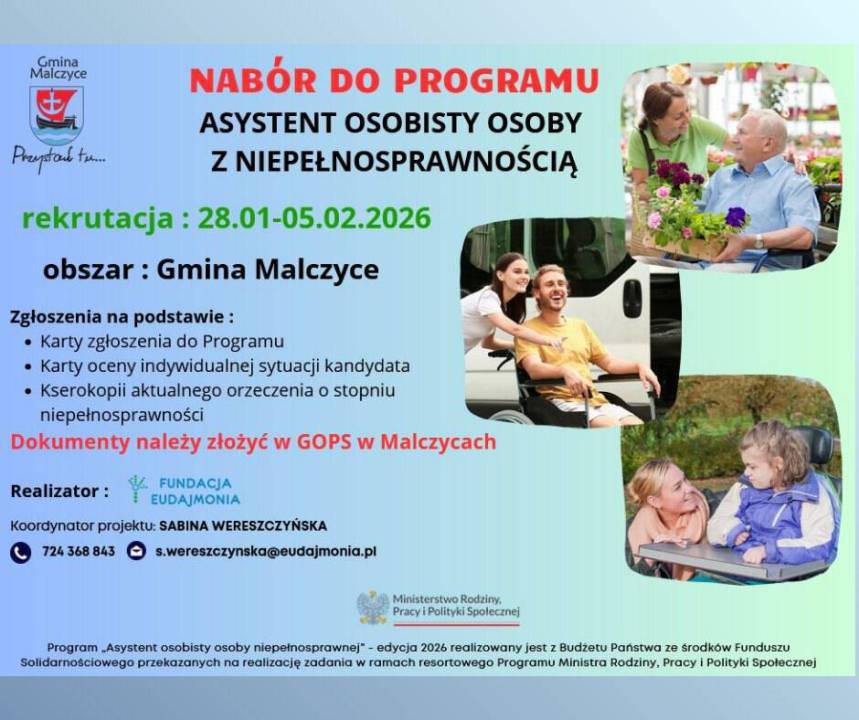 Gmina Malczyce: Nabór do programu „Asystent osobisty osoby z niepełnosprawnością”