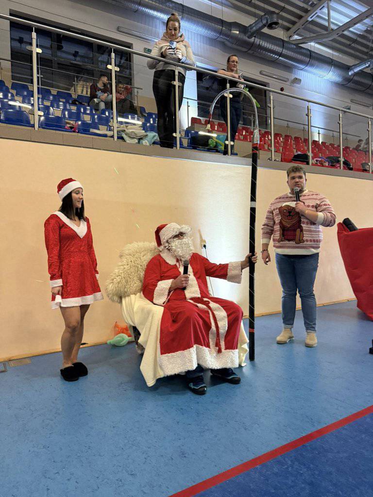 Od samego wejścia czuć było magię grudniowego czasu – kolorowe dekoracje, migoczące światełka i aromat świeżo pieczonych pierników tworzyły niepowtarzalny klimat. Dzieci i dorośli bawili się doskonale, uczestnicząc w licznych grach, konkursach, warsztatach oraz spotkaniu z Mikołajem, który obdarował najmłodszych upominkami.
