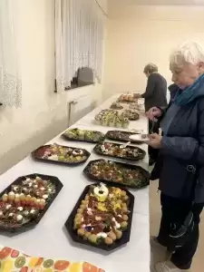 Po występie zaprosiliśmy naszych Seniorów na pyszny poczęstunek w sali bankietowej, gdzie przy wspólnym stole mogliśmy porozmawiać i cieszyć się miłą atmosferą.
