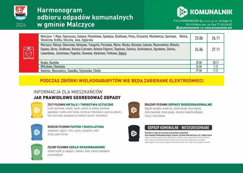 Harmonogram odbioru odpadów w gminie Malczyce