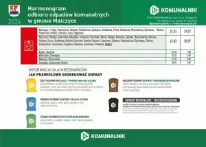W galerii poniżej przedstawiamy mieszkańcom Gminy Malczyce harmonogram odbioru odpadów w 2024 roku.