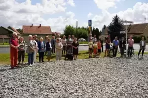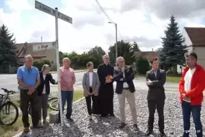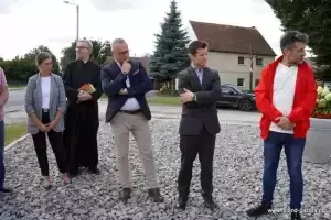 Przecięcia szarfy dokonali zaproszeni goście - Radny Dębic Zbigniew Wyrwisz, Wójt Gminy Malczyce Piotr Frankowski, Sekretarz Gminy Malczyce Magdalena Górak- Kaleta, Starosta Średzki Sebastan Burdzy, Proboszcz Parafii Rafał Kasprzak, który również poświęcił płytę, młodzi mieszkańcy oraz pomysłodawczyni projektu Czesława Wyrwisz.