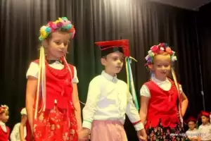 Chwilę później w pięknych strojach folklorystycznych wystąpiły maluchy z grupy „Biedronki” z Publicznego Przedszkola w Malczycach. Pomimo tak dużej widowni, wielu błysków fleszy, występ był w pełni profesjonalny, a dzieci na scenie czuły się jak „ryby w wodzie”.