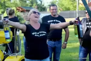 W tym dniu, prosto ze sceny, organizatorzy złożyli życzenia z okazji urodzin swojej koleżance ze stowarzyszenia, wręczając na jej ręce bukiet kwiatów. Oczywiście jak przystało na motocyklistkę, solenizantka zajechała pod scenę na motorze.