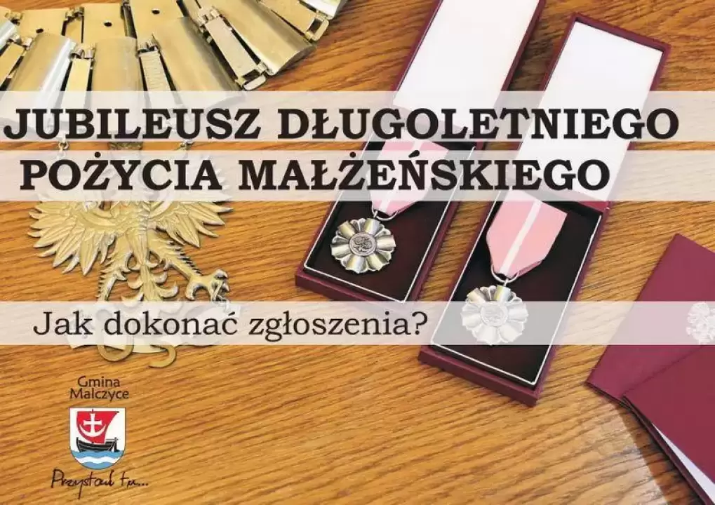 Pary małżeńskie obchodzące 50-lecie pożycia małżeńskiego, na stałe zamieszkałe na terenie Gminy Malczyce mogą zgłaszać chęć organizacji Jubileuszu składając wniosek w Urzędzie Stanu Cywilnego w Malczycach, który zainicjuje procedurę nadania Jubilatom Legitymacji oraz Medali za Długoletnie Pożycie.