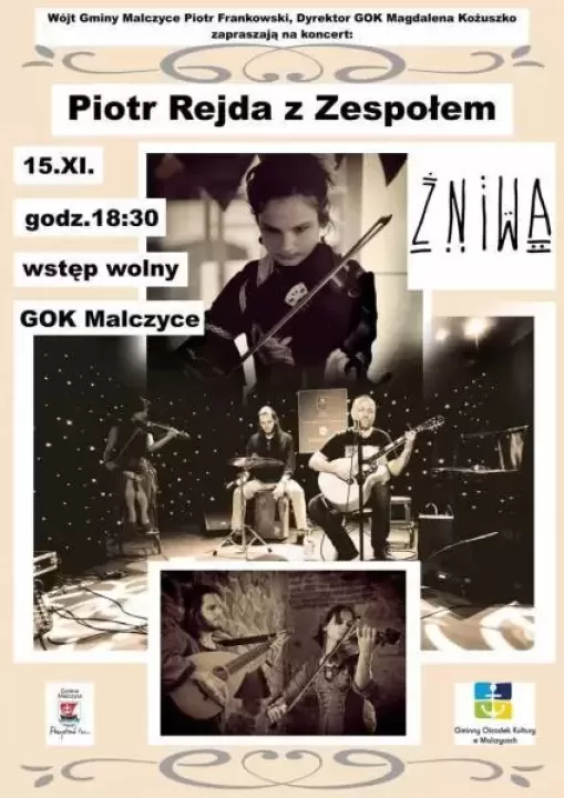 Muzyk, pieśniarz i kompozytor, Piotr Rejda ze Środy Śląskiej wystąpi wkrótce wraz z zespołem w Gminnym Ośrodku Kultury w Malczycach. Na muzycznym wieczorze gościć będzie również zespół Żniwa.