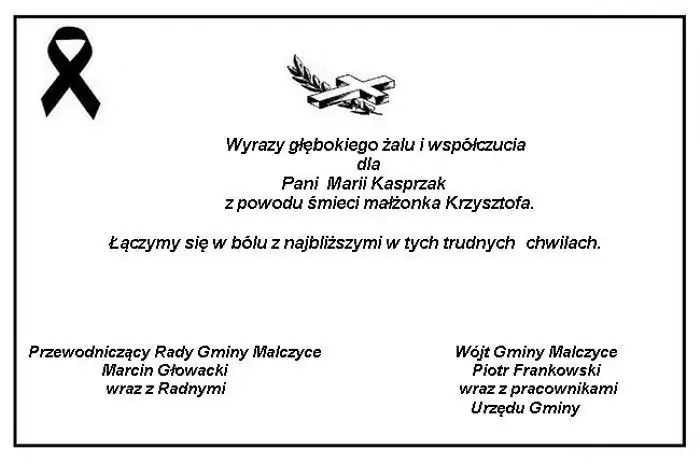 Wyrazy głębokiego żalu i współczucia dla Pani Marii Kasprzak z powodu śmieci małżonka Krzysztofa.