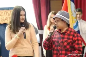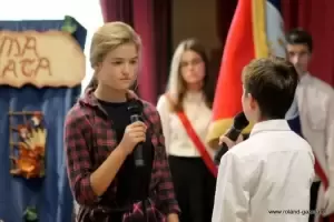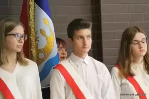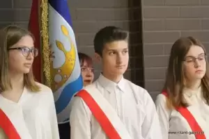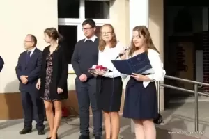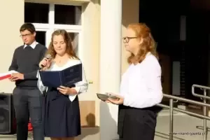 - Przez kilka miesięcy poprzedzających dzisiejszą uroczystość uczniowie naszej szkoły przygotowywali się do niej. Począwszy od wyboru imienia dla szkoły wspólnie z gronem pedagogicznym oraz radą rodziców, poprzez wycieczki, przez tworzenie makiet, rysunków i plakatów, również poprzez słuchanie wierszy i opowiadań o Dolnym Śląsku, a także konkursów wiedzy oraz finału projektu uwiecznionego dzisiejszym spotkaniem – przywitali gości przedstawiciele grona uczniowskiego.
