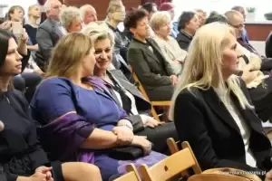 Po inauguracji szkolnego święta, goście udali się ozdobionymi w ciekawostki Sarbów Dolnego Śląska korytarzami szkoły do auli.