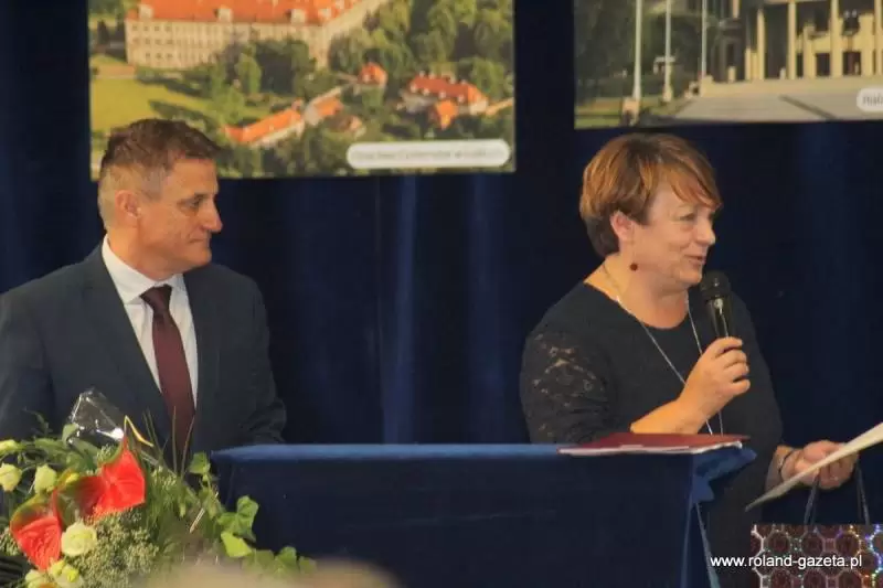 Zgromadzonych przywitała także p. dyrektor szkoły, mgr. Marzena Łaziuk: - Szanowni Państwo, miło mi Was dzisiaj powitać w tak ważnym dniu dla naszej szkoły. Do nadania imienia przygotowywaliśmy się dosyć długo. Wszyscy Państwo jako przedstawiciele różnych instytucji będzie mieli okazję się wypowiedzieć w tej kwestii. No i wypadło na Skarby Dolnego Śląska. Rada rodziców i rada pedagogiczna, prawie w 100 % poparła ten wybór. Jest mi niezmiernie miło w tym ważnym, szczególnym dniu dla naszej szkoły powitać naszych gości.