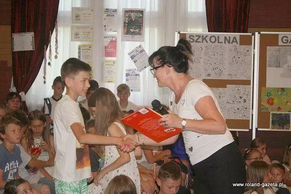 W związku z zebraniem się wszystkich uczniów w sali widowiskowej, nauczyciele korzystając z okazji, rozdali nagrody za udział w konkursach historycznych, muzycznych oraz językowych, w tym z j. polskiego.