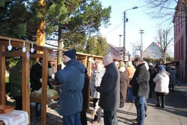 Kiermasze wystawione były od godz. 8:00 do 13:00. Po każdej mszy św. mieszkańcy mogli zakupić m.in.: tradycyjne ozdoby, pisanki, stroiki na stół świąteczny, ręcznie wykonane kartki wielkanocne oraz wiele innych rękodzielniczych produktów. Były swojskie wędliny prosto z wędzarni Piotra Sonnenberga z Młynu Zawadka oraz domowe ciasta, upieczone przez mieszkanki gminy. Wszystkich częstowano również gorącym żurkiem.