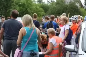Uczestnicy zostali podzieleni na grupy w celu bezpiecznego poruszania się po trasie rajdu.